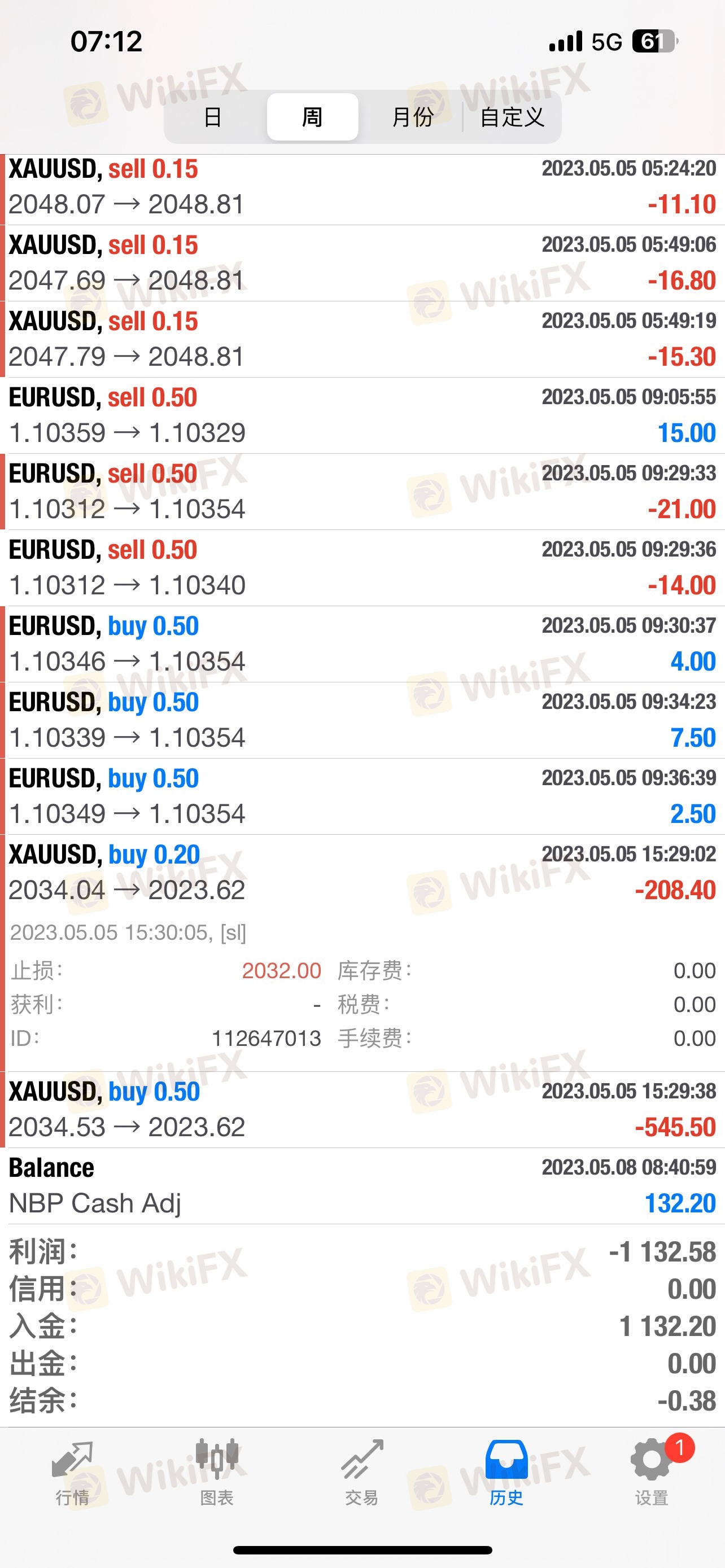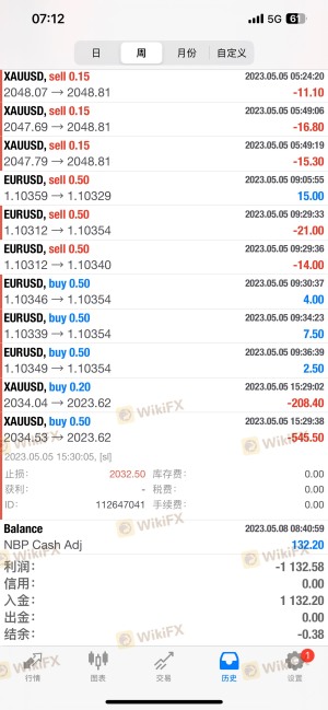 2023年5月5日两笔交易均出现严重滑点,一单滑点8.83美金,另一单滑点8.88美金,导致账户直接穿仓出现负132.2美金,后平台仅补132.2美金将账户归零,除此外,未进行任何补偿。